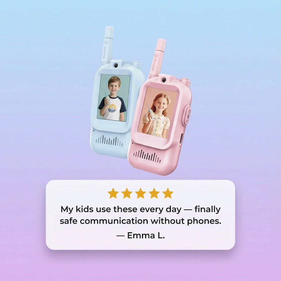Dedicated walkie talkie frequency = private communication between devices only. No WiFi connection needed. No exposure to apps, ads, YouTube, or strangers online. Just pure outdoor adventure without digital risks.